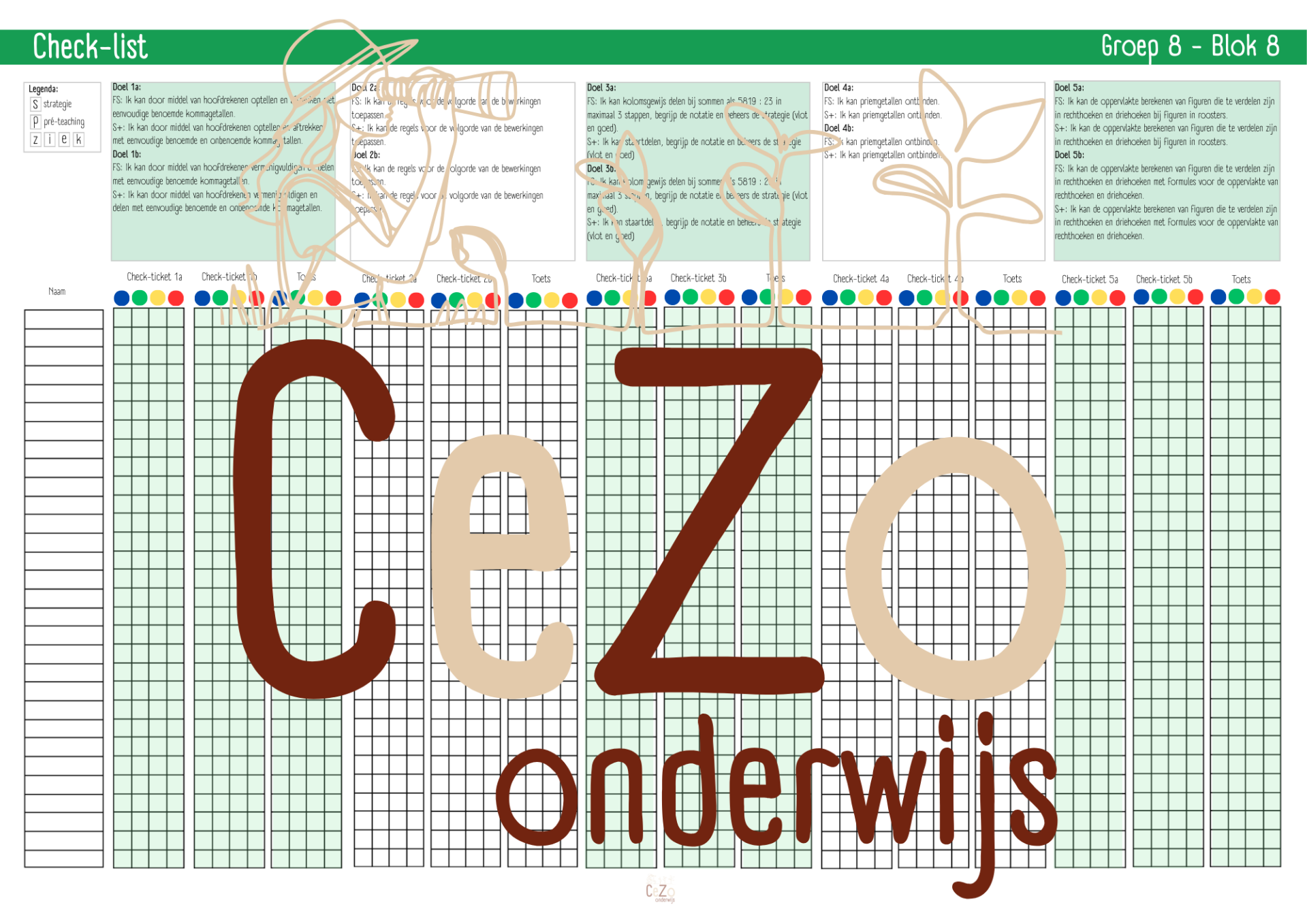 Met deze digitale check-list krijg je in één oogopslag overzicht over de voortgang van je hele klas per rekenblok. Het product is speciaal ontwikkeld voor WIG 5 en bevat 9 overzichtelijke blokken met in totaal alle 90 bijbehorende leerdoelen.