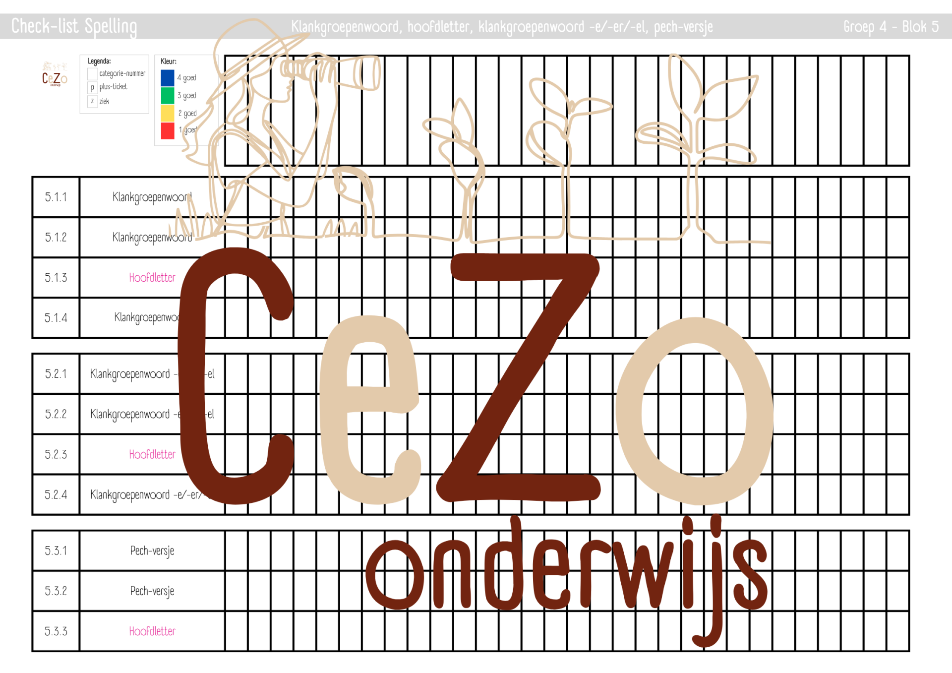 Met deze check-list krijg je in één oogopslag overzicht over de voortgang van je hele klas per spellingblok. Het product is speciaal ontwikkeld voor STAAL 2 en bevat 8 overzichtelijke blokken met in totaal alle bijbehorende leerdoelen. De zwarte leerdoelen zijn categoriedoelen en de roze leerdoelen zijn grammaticadoelen.